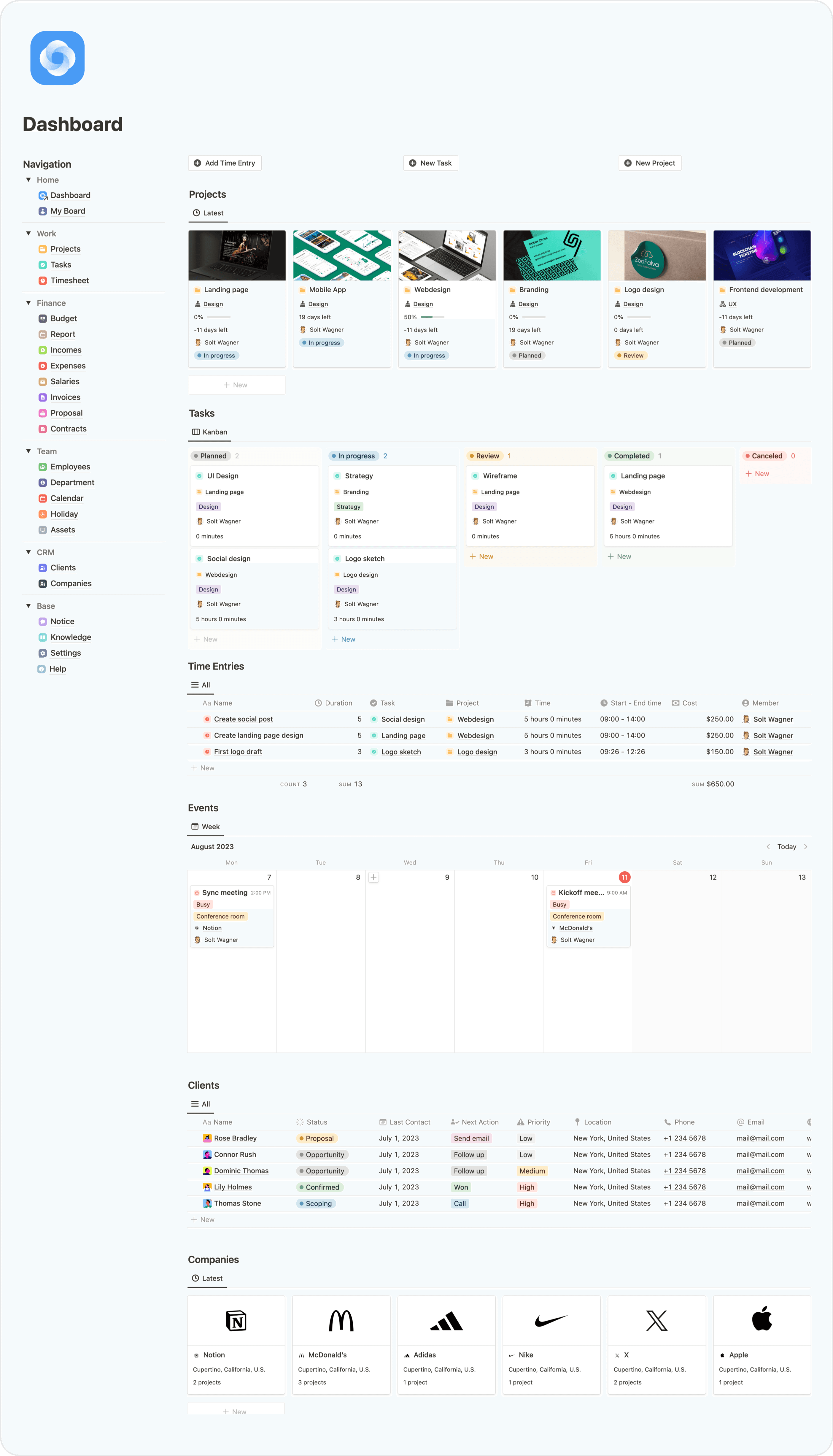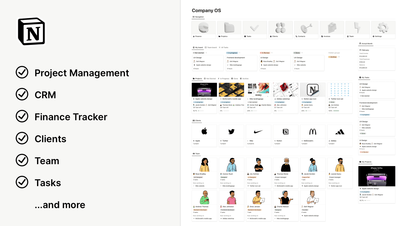 Boost Your Freelance Business with this All-in-One Notion Template for Project Management, Task Manager, Finance Tracker, Meetings and CRM!