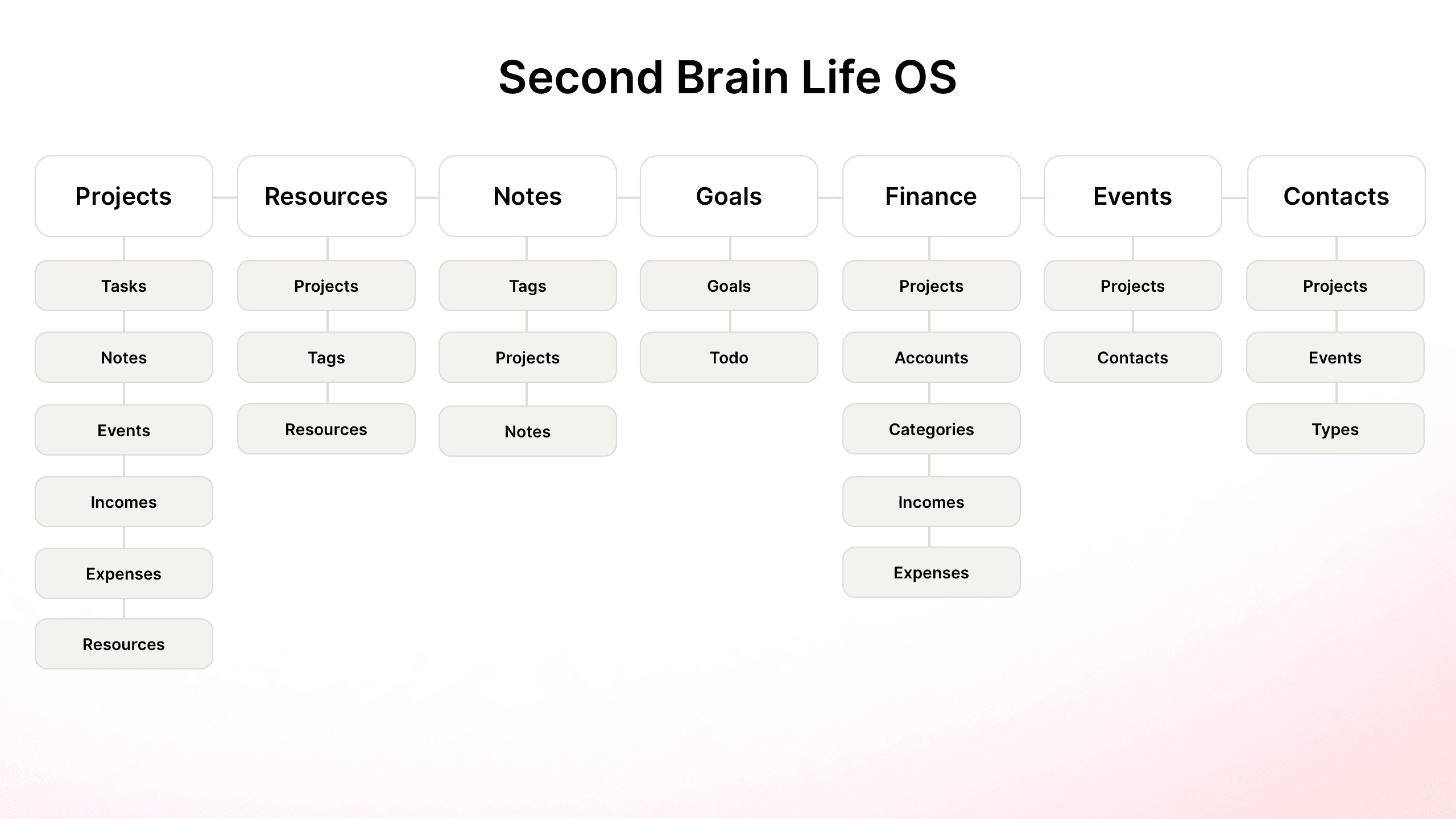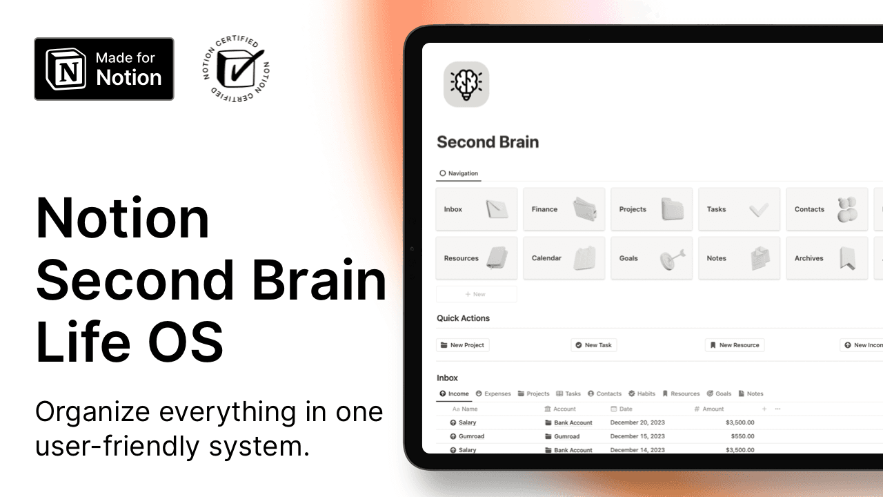 This powerful system helps you organize every aspect of your life in one user-friendly platform. From managing projects, tasks, and resources to keeping track of notes, finances, contacts, events, habits, and goals, Notion Second Brain Life OS has got you covered.