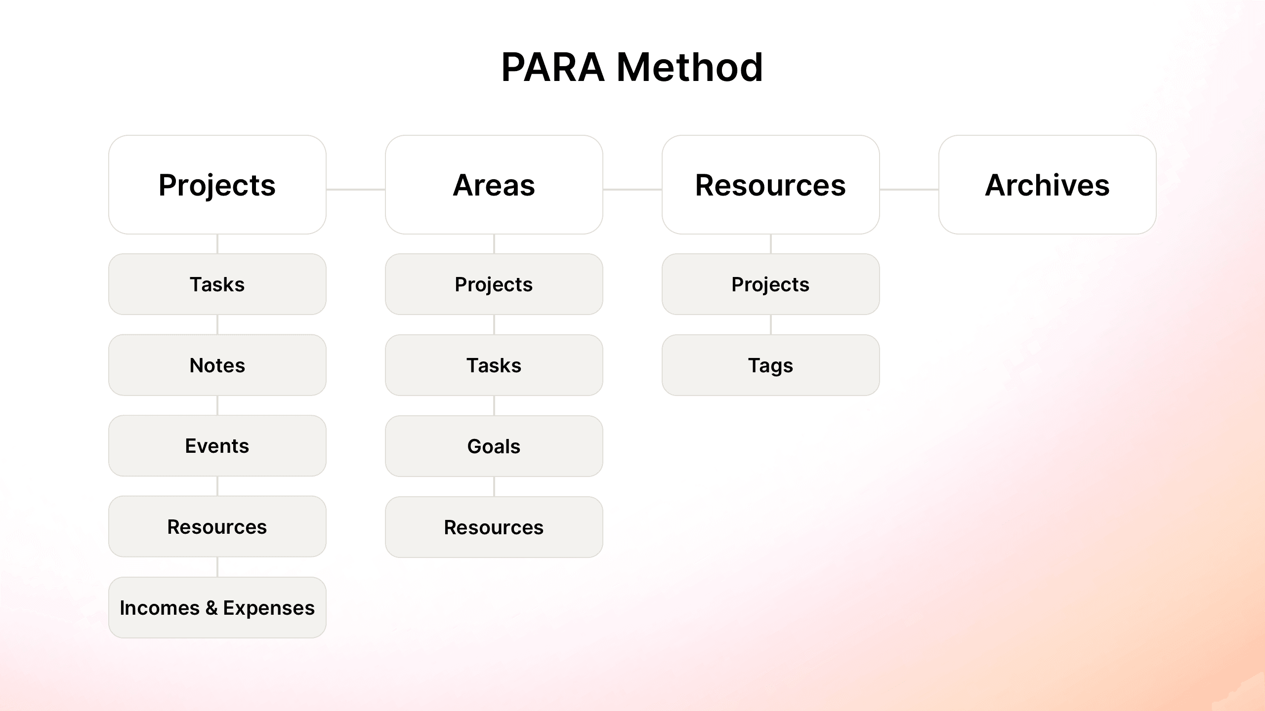 The PARA method, popularized by Tiago Forte, is a powerful organizational framework used with Notion Second Brain to structure your life effectively.