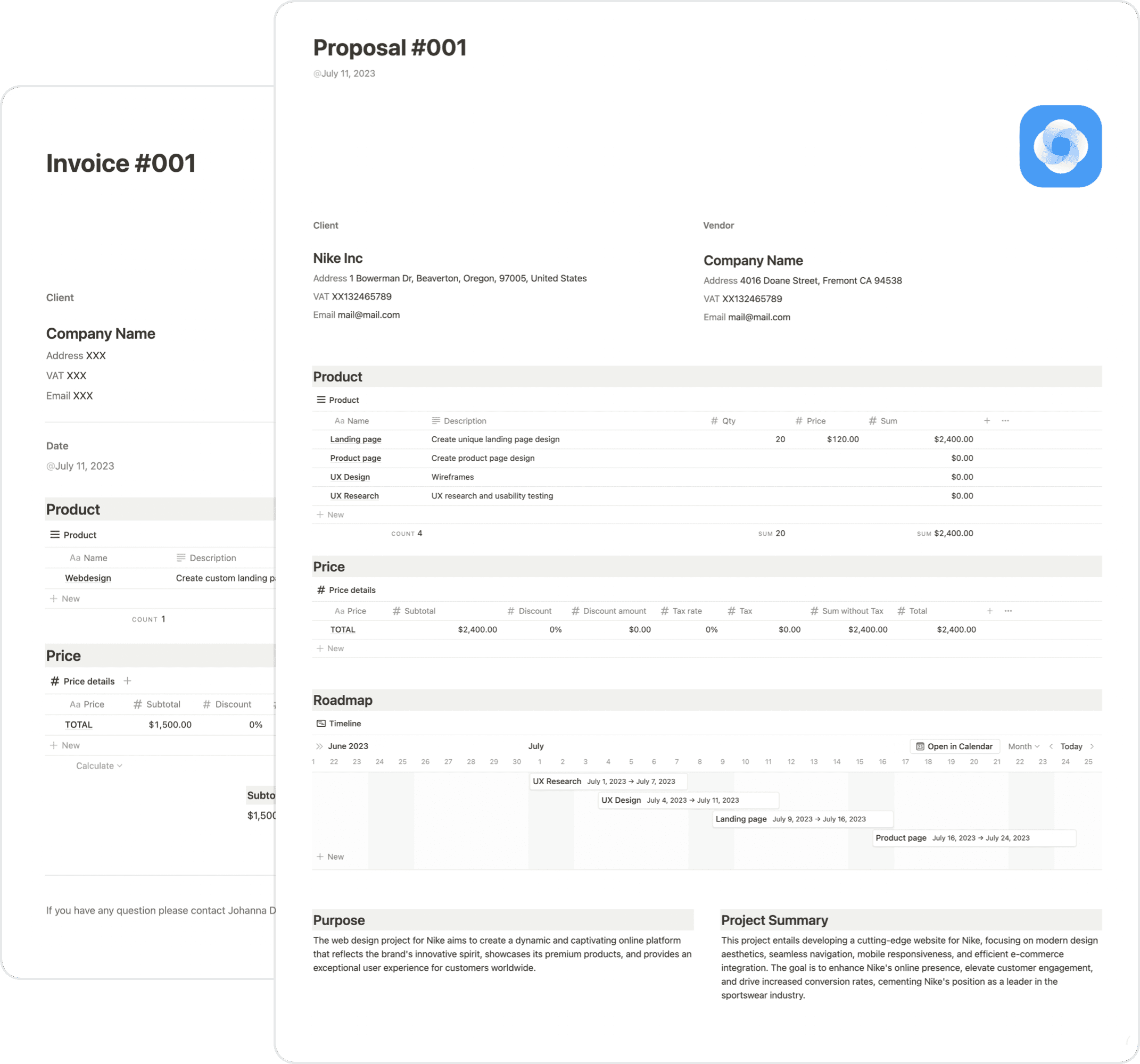 ✓ Invoice, Proposal, Contracts